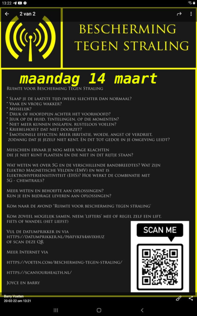 Deze presentatie heb ik samen met Joyce Hendriks van Scan Your Health gegeven voor De Ruimte in het voorjaar van 2022. Omdat in december en januari was gebleken dat teveel mensen toevallig met dezelfde klachten liepen. Ook mensen zonder magnetron hadden verhoogde “magnetron” waardes in hun NES-scans.